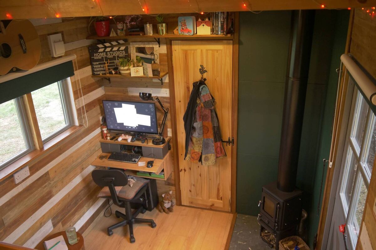 L'intérieur mesure 12 m² (129 pieds carrés) et la conception à deux niveaux a permis à Jack d'éviter de placer la chambre près du toit.