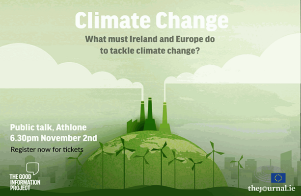 Mardi soir prochain, le 2 novembre, The Good Information Project vivra à Athlone en conjonction avec la COP26, demandant « Que devraient faire l’Irlande et l’Europe pour lutter contre le changement climatique ?